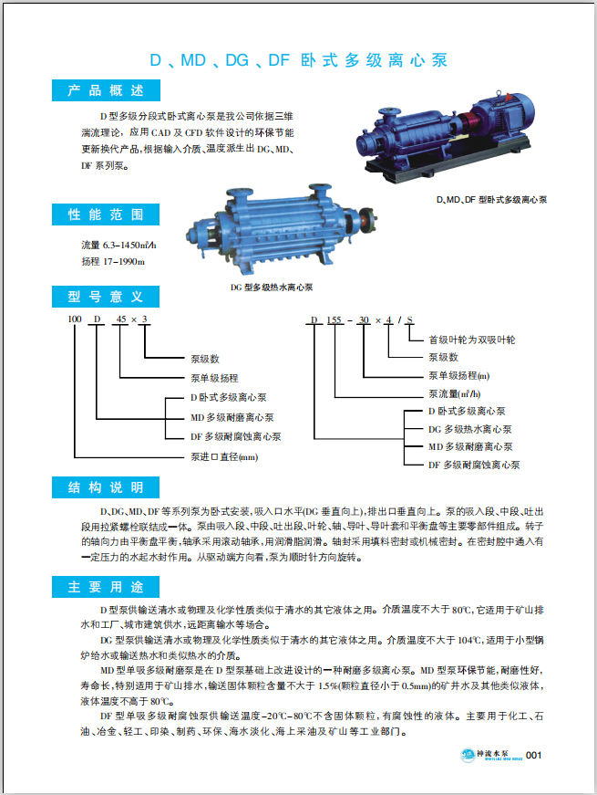 MD(P)型煤矿耐用多级离心泵(自平衡)
